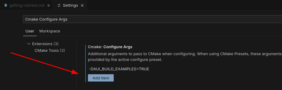 Add itemand enter-DAUI_BUILD_EXAMPLES=TRUE.